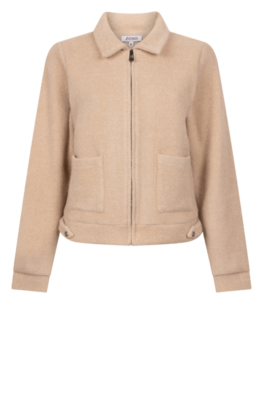 Het Zoso jasje in zandkleur is een veelzijdig en stijlvol item dat niet mag ontbreken in je garderobe. Dankzij het korte model en de ritssluiting is dit jasje zowel praktisch als trendy. De kraag geeft het ontwerp een klassieke touch, terwijl de verstelbare knoopdetails zorgen voor een speels en vrouwelijk accent.