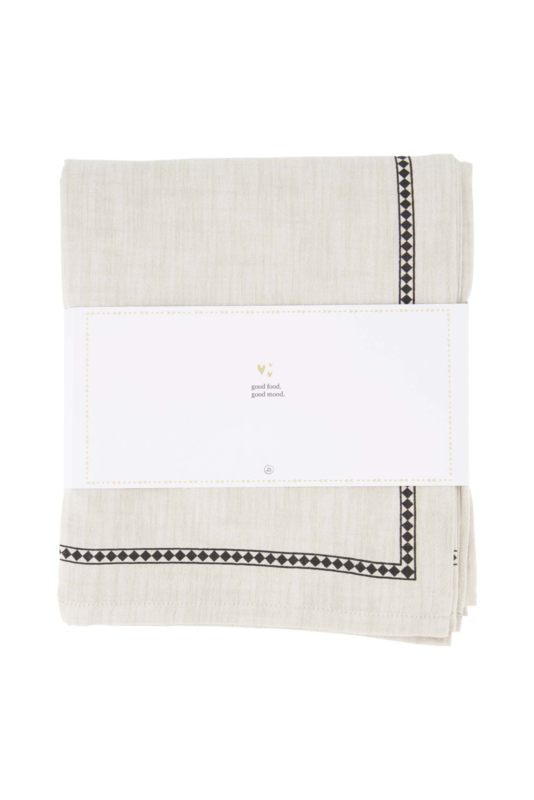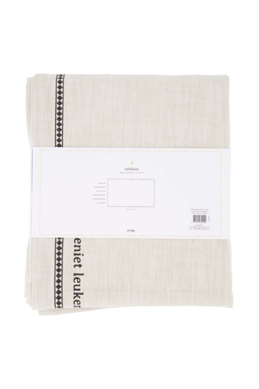 Het Zusss tafelkleed Zand geeft je eettafel een warme uitstraling. Het zandkleurige kleed is gemaakt van katoen en heeft subtiele antracietgrijze tekst die het tafelkleed een speels detail geeft.