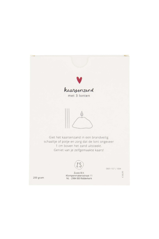 Met het Zusss kaarsenzand haal je een creatief en sfeervol item in huis. Het kaarsenzand wordt geleverd in een mooi doosje, inclusief lont, zodat je direct aan de slag kunt. Vul een leeg potje, mokje of een ander geschikt bakje en creëer je eigen kaars op maat.