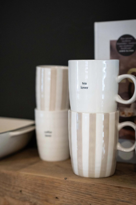 Je bakkie thee smaakt nog lekkerder uit de Zusss mok! Deze vrolijke mok heeft een ontwerp met diagonale strepen in wit en zand, waardoor hij niet alleen praktisch is, maar ook een echte blikvanger op je tafel. Het leuke streepjespatroon zorgt voor een frisse en speelse uitstraling, perfect om je ochtend mee te beginnen of om gezellig samen te genieten van een kop thee of koffie.