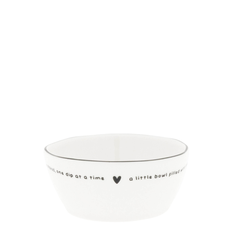 Ontdek het Bastion Collections schaaltje, een stijlvolle aanvulling op je serviescollectie. Gemaakt van keramiek, heeft dit schaaltje een unieke prints in de kleur titaan. Met een diameter van 9,5 cm en een hoogte van 4 cm is het ideaal voor het serveren van snacks, dips of bijgerechtjes. Het schaaltje is verkrijgbaar in diverse ontwerpen: één schaaltje heeft een hartjes-print, tekst of een streeppatroon.