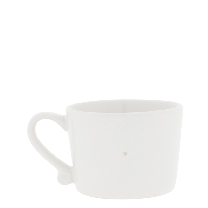 De Bastion Collections mok in crème/wit met een hart-print en op de bodem de tekst 'have a lovely day. Met een inhoud van ca. 150 ml is dit de kleinste koffiemok uit de collectie, ideaal voor een snelle espresso of een kleinere portie koffie. Het subtiele hart zorgt voor een sfeervol detail, terwijl de mok perfect in de hand ligt.