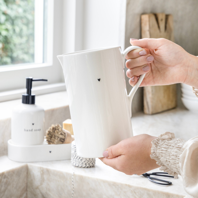 Deze grote kan van Bastion Collections is een prachtig item voor je keuken en tafel. Dankzij het oor en de schenktuit schenkt de kan soepel en gecontroleerd, ideaal voor water, melk of een glas verse jus d’orange. Het tijdloze ontwerp en de neutrale kleur passen moeiteloos in elk interieur, van modern tot landelijk.