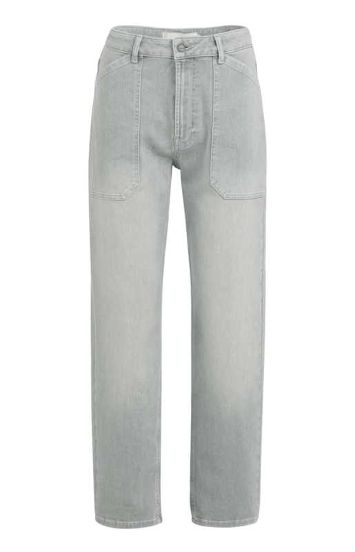 Het model heeft een hoge taille, een laag kruis en een losse pasvorm met rechte, wijde pijpen. Dit zorgt voor een relaxte, moderne fit die helemaal past binnen het huidige silhouet. De opgestikte zakken aan de voorkant geven de jeans een subtiele cargo look en maken het ontwerp net even anders.