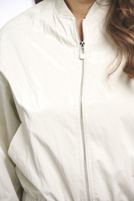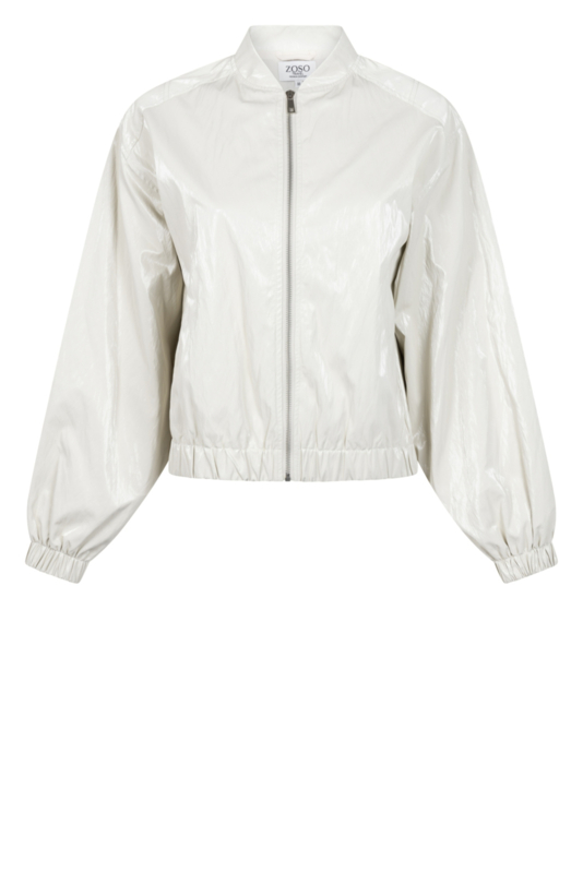 Het Zoso jasje in kitkleur is een comfortabele en moderne toevoeging aan je garderobe. Het jasje sluit met een rits aan de voorzijde en heeft ballonmouwen, wat zorgt voor een luchtige, ontspannen look.