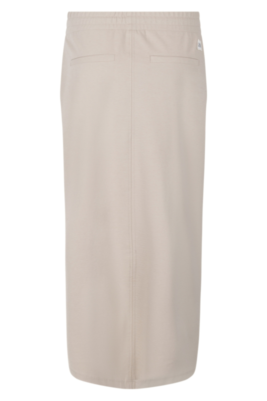 De rok is voorzien van twee praktische steekzakken aan de zijkant, wat zorgt voor een sportieve en comfortabele look. Aan de voorkant bevindt zich een subtiele split die niet alleen zorgt voor een eigentijds detail, maar ook extra bewegingsvrijheid biedt. Dit maakt de rok geschikt voor dagelijks gebruik én voor een meer geklede gelegenheid.