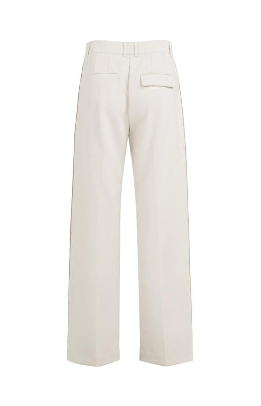 De subtiele stiksels langs de zijnaden geven de broek net dat extra detail. Verder is het model afgewerkt met steekzakken, riemlussen en een klepzak aan de achterkant, wat zorgt voor een verzorgde en complete uitstraling.