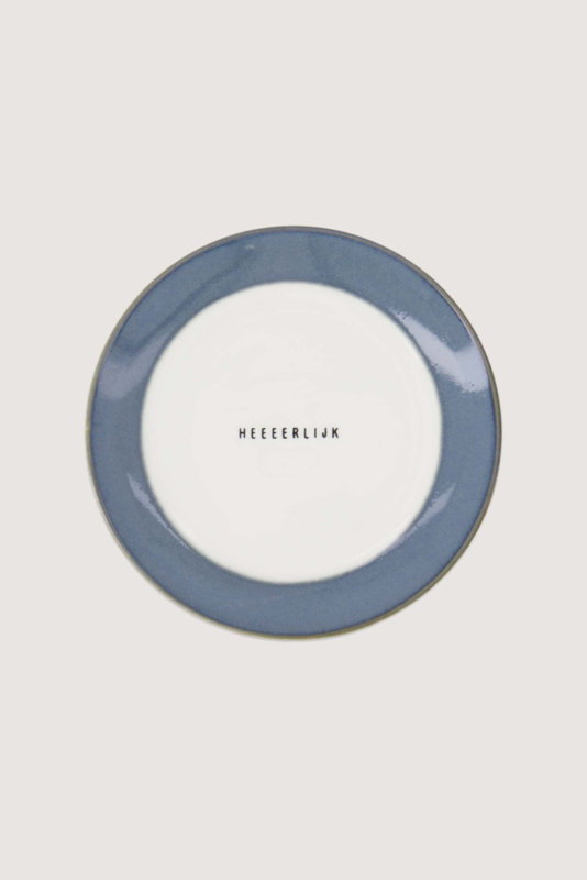 Dit Zusss gebaksbordje met blauwe rand brengt direct een frisse en speelse touch op tafel. In het midden staat de tekst ‘heeeerlijk’, een vrolijke knipoog die perfect past bij een stukje taart of iets anders lekkers.