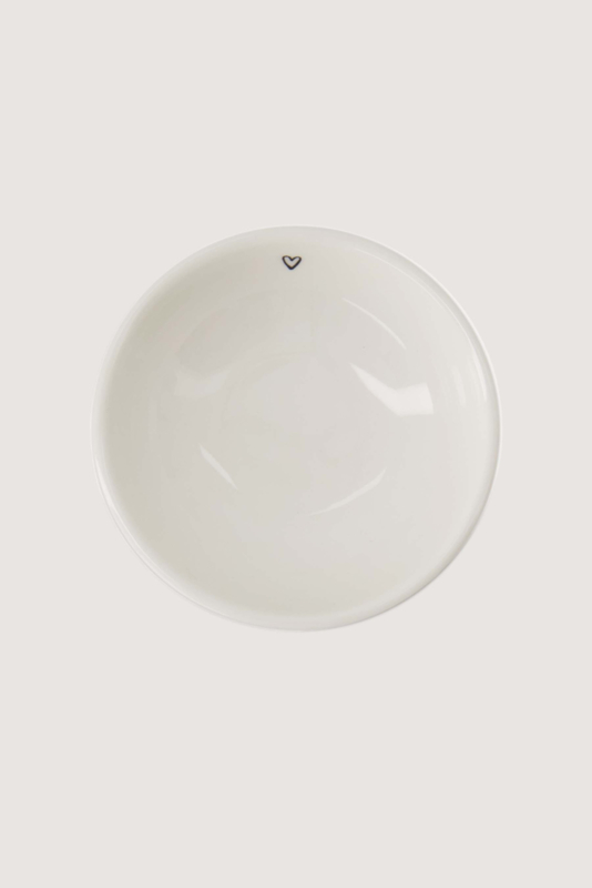 Schaaltje van wit keramiek met een klein zwart hartje.