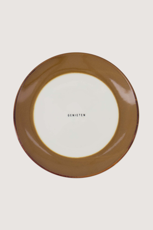 Dit Zusss ontbijtbordje zorgt meteen voor een gezellige start van je dag. De bruin rand geeft het bordje een warme, rustige uitstraling en in het midden staat een tekst.