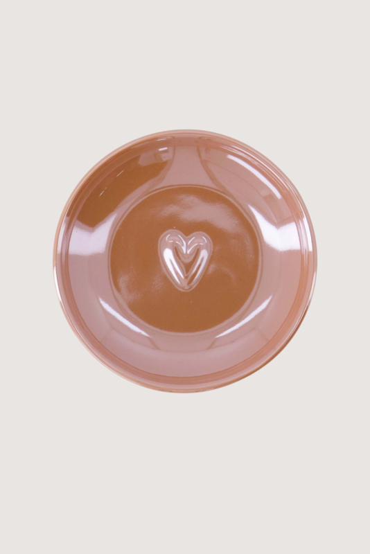 Dit Zusss dipschaaltje van keramiek in roze heeft een hartje in het midden. Het schaaltje heeft een diameter van 11 cm en past bij verschillende soorten servies. De zachte roze kleur maakt het makkelijk te combineren met andere mokken, kopjes en borden.