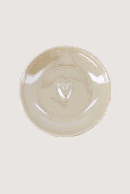 Dit Zusss dipschaaltje van keramiek in zandkleur heeft een hartje in het midden. Het schaaltje heeft een diameter van 11 cm en past bij verschillende soorten servies. De neutrale zandkleur maakt het gemakkelijk te combineren met andere mokken, kopjes en borden.