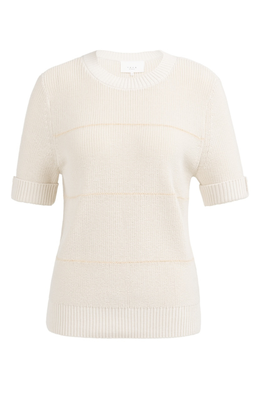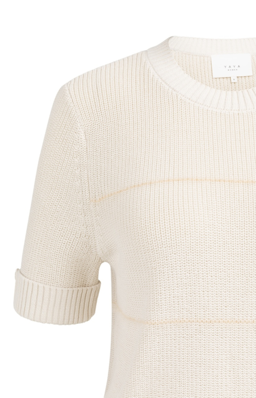 Deze gebreide YAYA trui met korte mouwen heeft een speelse en zachte uitstraling. De contrasterende, fluffy strepen geven het item een leuk accent en zorgen voor een subtiel reliëf in de stof.