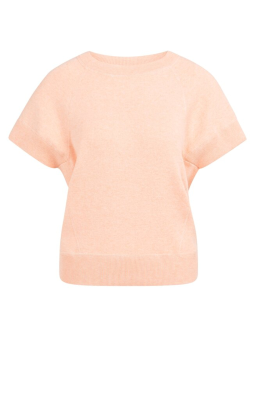 Deze YAYA sweater in een zachte peach kleur is zo’n item waar je meteen blij van wordt. Gemaakt van katoen en heerlijk luchtig, perfect voor elke dag. De korte, licht aangeknipte mouwen geven de sweater een relaxte look, terwijl de ronde hals en normale pasvorm zorgen dat hij gewoon lekker zit. De subtiele naaddetails en ribboorden geven net dat beetje extra, zonder dat het druk wordt.