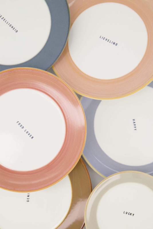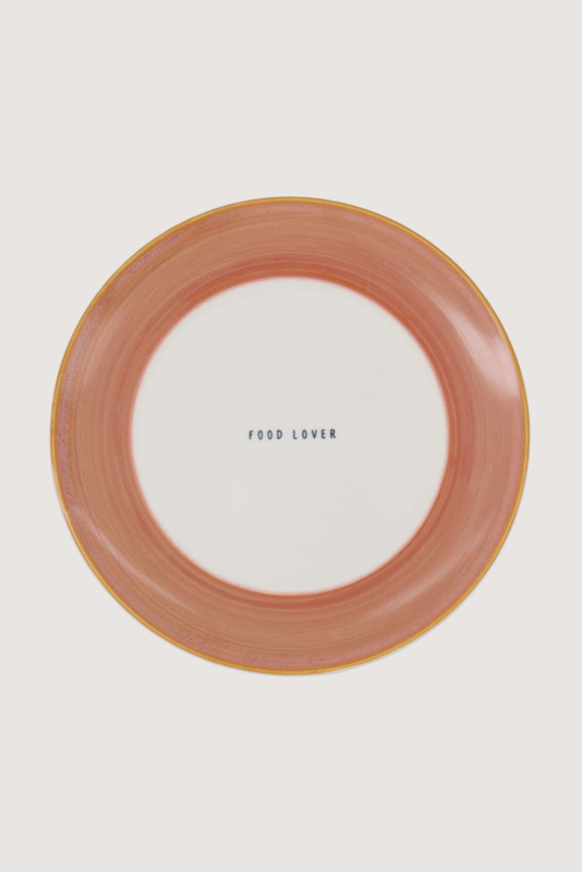 Zusss ontbijtbord met donkerroze rand geeft je tafel een warme, gezellige uitstraling. In het midden staat de tekst ‘food lover’, een lieve reminder om even stil te staan bij een kop koffie en iets lekkers.