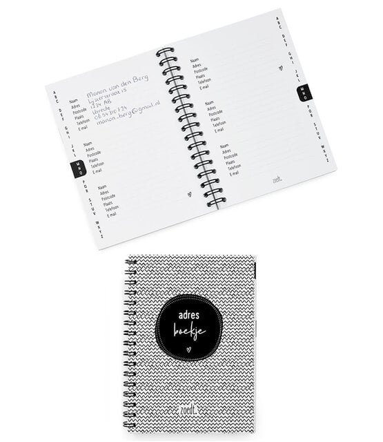 Het formaat is A6 (105 x 148 cm) en het boekje heeft 60 pagina's (excl voor- en achterkant). Lekker compact waardoor je hem makkelijk in je tas meeneemt. Zo heb je altijd alle adressen bij de hand.