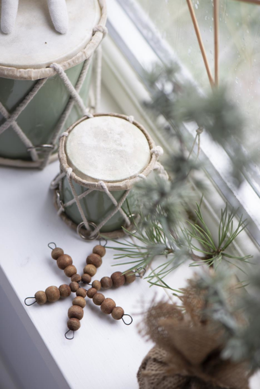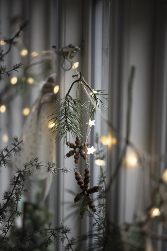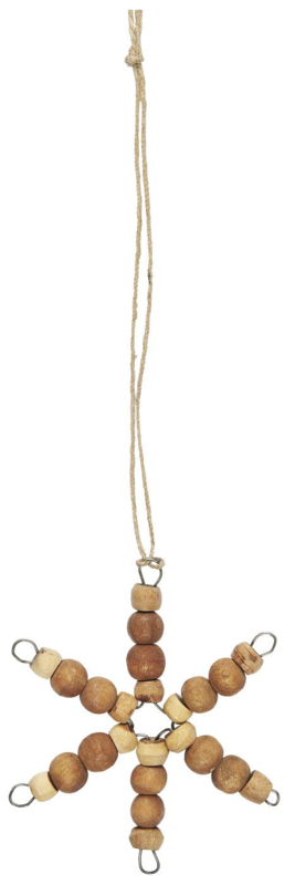 Ster van houten kralen. Deze hanger van Ib Laursen heeft een metalen basis en een touw om ergens aan te hangen. Leverbaar in drie verschillende maten: s, m en l.
