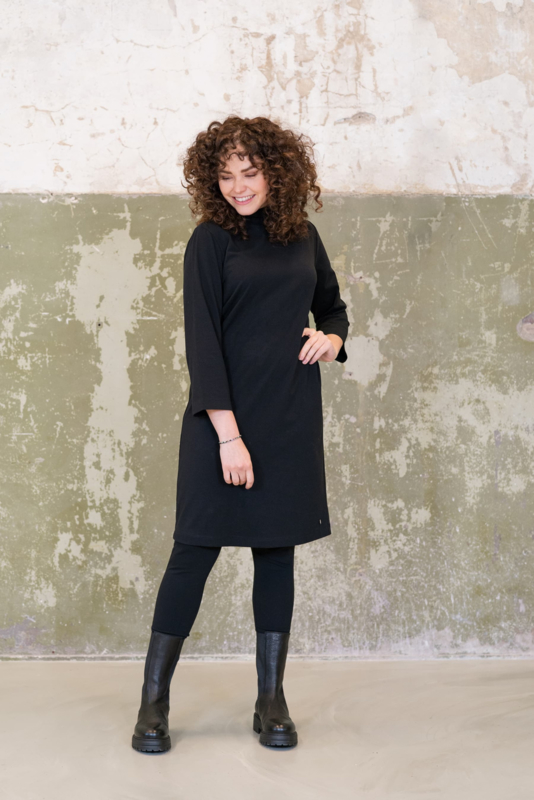 Deze jurk is zwart van kleur en gemaakt van 95% katoen en 5% elastaan. Deze materiaalsamenstelling maakt de jurk heerlijk zacht en warm,. De jurk valt op de knie en is voorzien van een kleine col. De driekwartmouwen geven de jurk een eigenwijze knipoog. Combineer de jurk met een stoere Zusss legging en je bent klaar om te gaan!