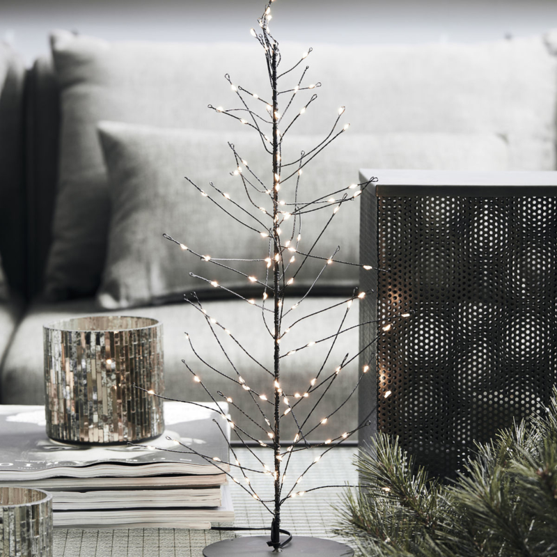 Winterse decoratie met deze kerstboom van metaaldraad. Deze verlichting wordt gesierd door kleine LED-lampjes op takken van metaaldraad die je kunt draaien en buigen. Het eenvoudige ontwerp en de zwarte kleur passen goed bij de rest van je interieur en voegen een zacht licht toe. Wordt geleverd met een timerfunctie: 6 uur aan, 18 uur uit. Batterijen niet inbegrepen (werkt op 3 AAA-batterijen). Ook verkrijgbaar in een kleinere versie maat l.