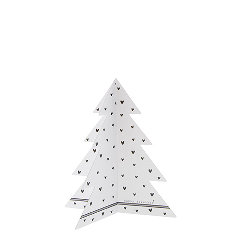 Hoe leuk zijn deze papieren kerstboompjes van Bastion Collections. Gemaakt van stevig papier met zwarte hartjes en details. De boompjes worden plat geleverd, je schuift ze zo in elkaar. Een feestje op de keukentafel tijdens de feestdagen of als woondecoratie in huis.