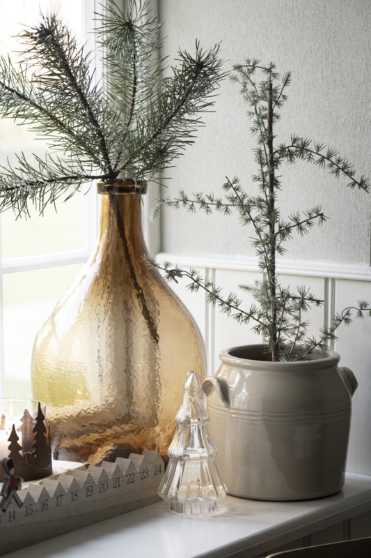 Boomje van glas in de vorm van een kerstboom! Hoe leuk om deze te combineren met de ceder-boompjes of kransen. De hoogte van dit kerstboompje is 20 cm. Stop er een klein draadje LED verlichting in voor een extra leuk sfeertje.