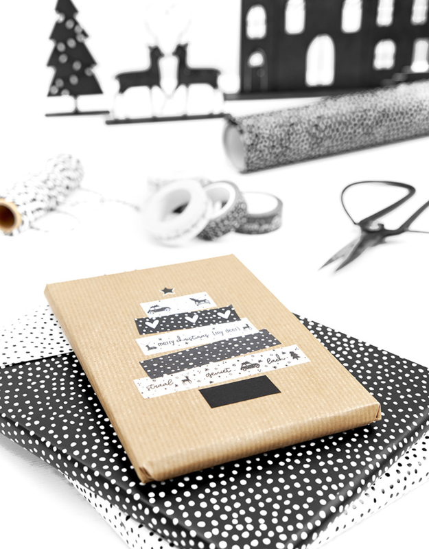 Zwarte maskingtape winter met de tekst: 'kerst Lach geeft straal geniet'. Versier je cadeautje met deze leuke masking tape en uitpakken wordt een feestje! Er zijn heel veel verschillende manieren om een cadeautje in te pakken. Heel erg leuk om te doen en ook super leuk om te krijgen.